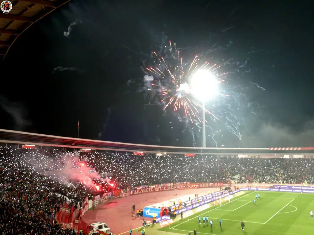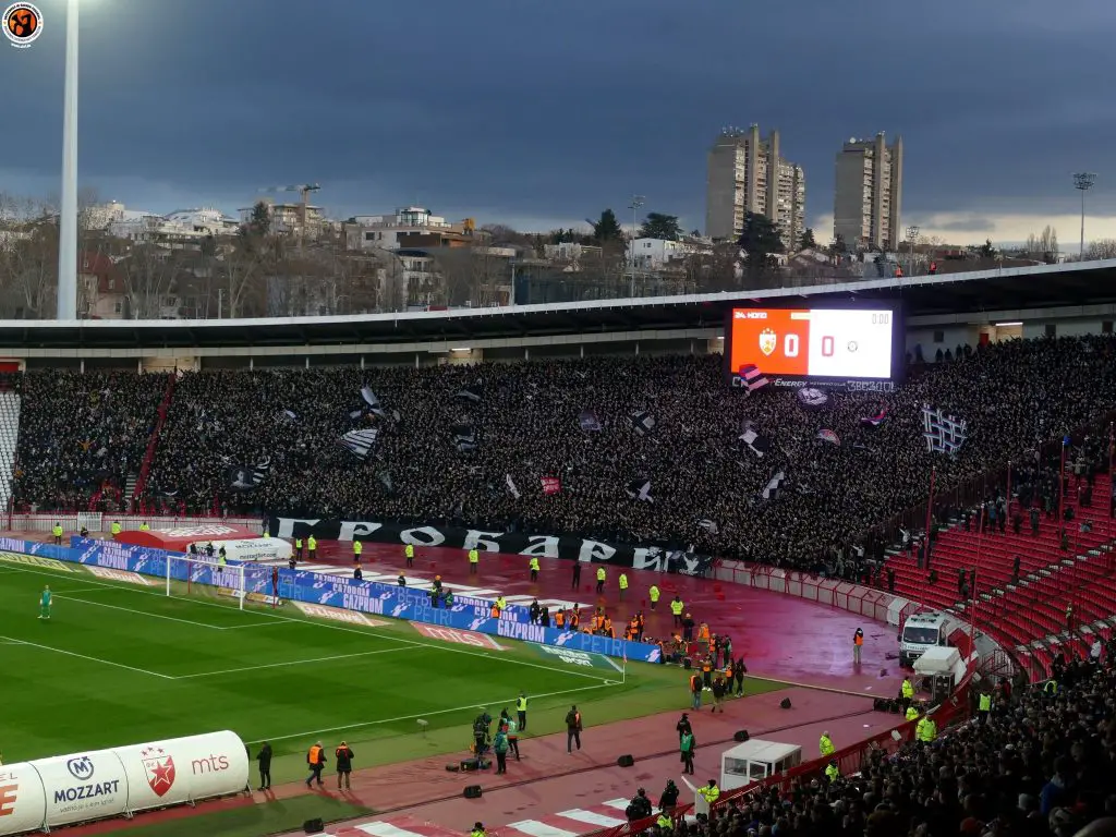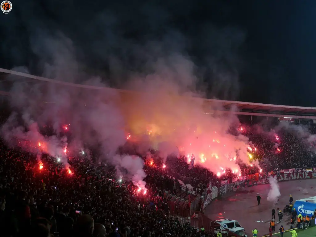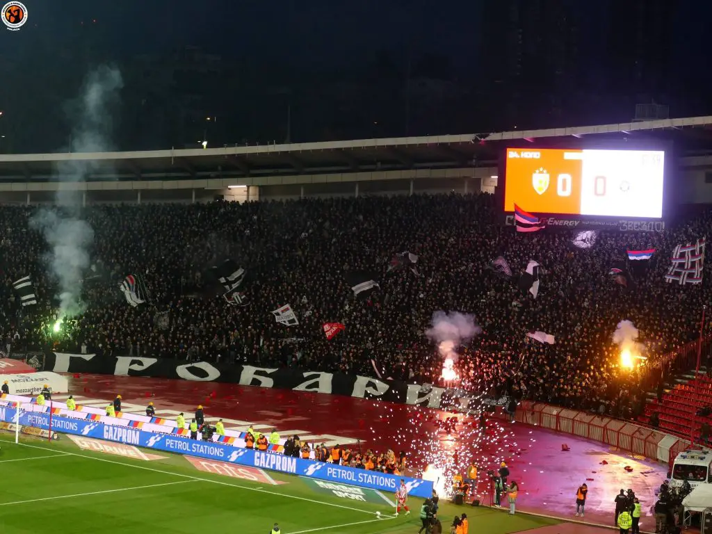 The stadium was rammed: west stand gone, most tickets sold out, and both Delije and Grobari roaring with full force. Chants, smoke bombs and pyro were already part of the match, it was clear this wasn’t going to be an ordinary derby.