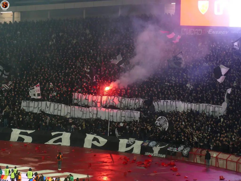 Grobari later marched toward Marakana in a loud, flare-lit corteo escorted tightly by police, making their presence felt long before the match even started.