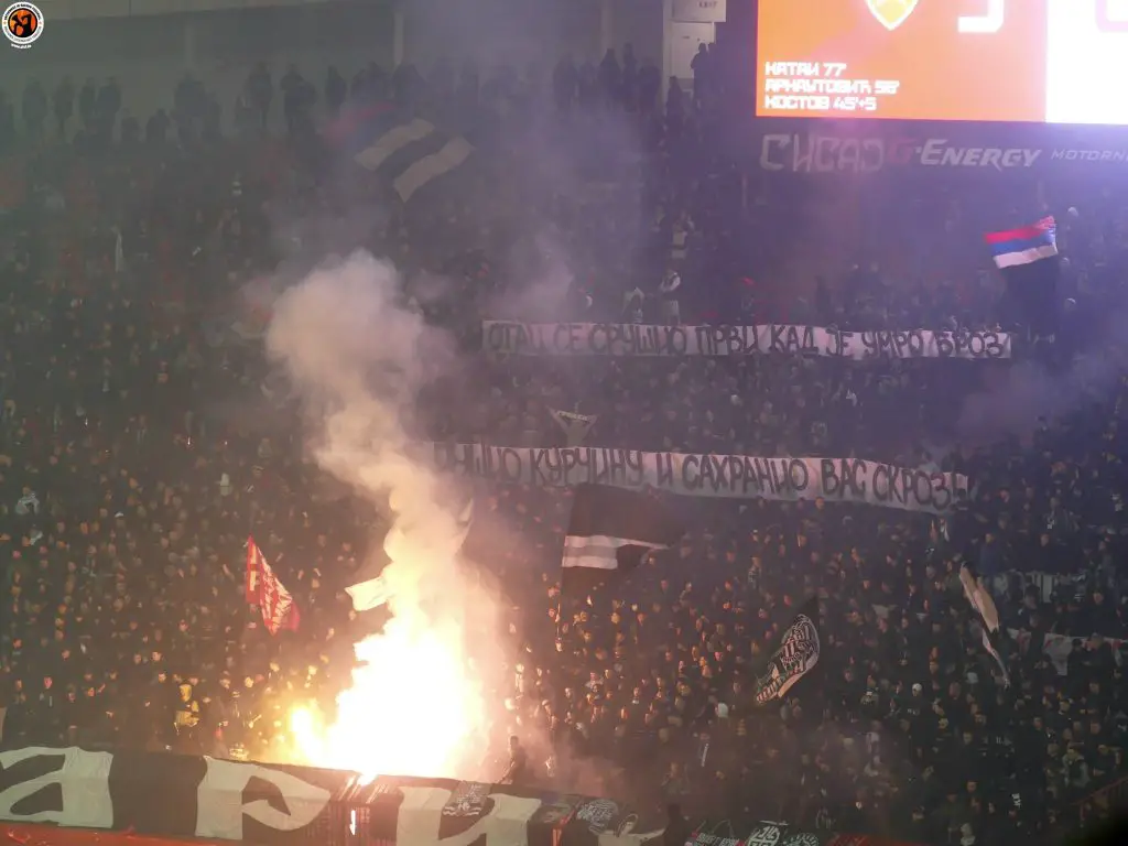 Grobari later marched toward Marakana in a loud, flare-lit corteo escorted tightly by police, making their presence felt long before the match even started.