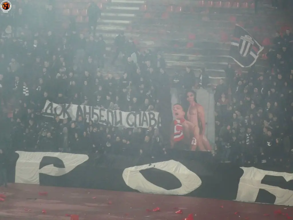 Inside, Delije gave Grobari a taste of their own medicine with provocative banners and chants targeting their rivals’ identity. They snuck up a banner inside the stadium, above the Grobari that read: “Every Grobar celebrates Franjo Tudman”, for those who don’t know Tudman was the former president of Croatia during the bloody breakup of Yugoslavia.
